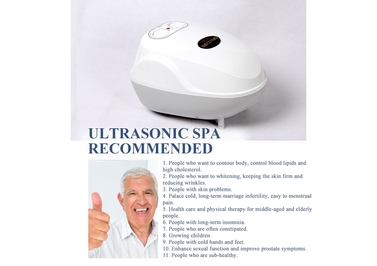 | موج اولتراسونیک | امواج اولتراسونیک قدرتمند تمام بدن را آرام می کند، به اثر ورزش می رسد و بهتر از حمام چشمه آب گرم عمل می کند. | صفر | صفر | صفر |