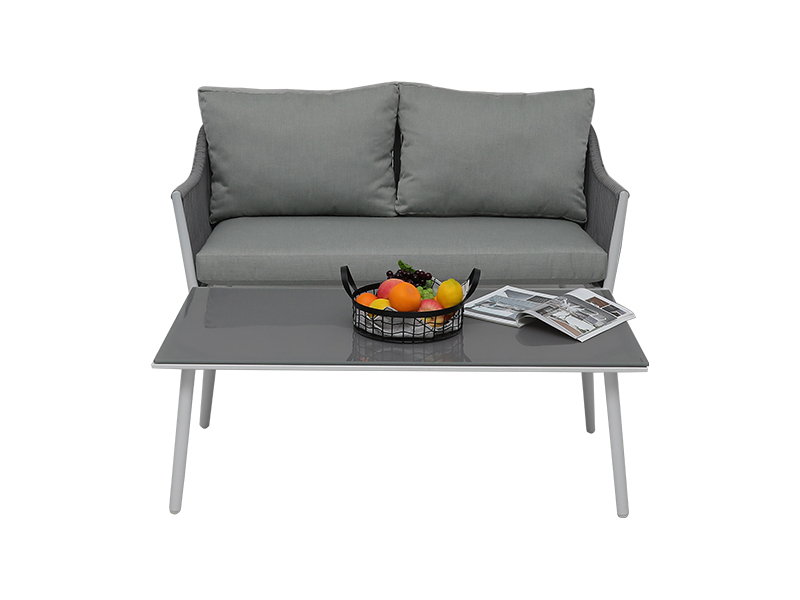 | مشخصات | قاب آلومینیومی با طناب بافته شده، در مجموع 4 عدد. صندلی عشق: L75*W135*H76cm، 1PC صندلی تکی: L75*W75*H76cm، 2عدد میز قهوه خوری: L114*W60*H38.5cm، شیشه خاکستری 5 میلی متری، 1PC |
